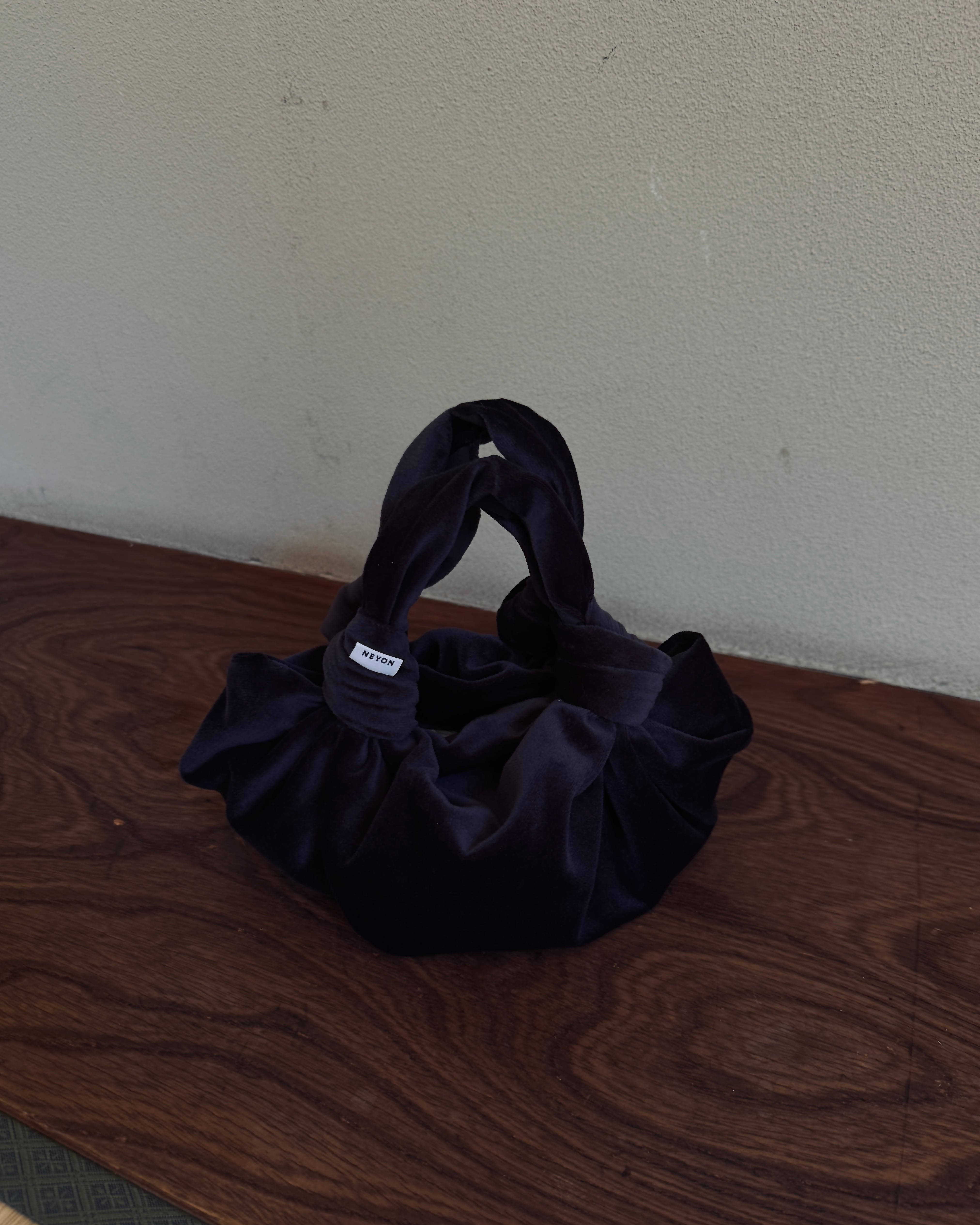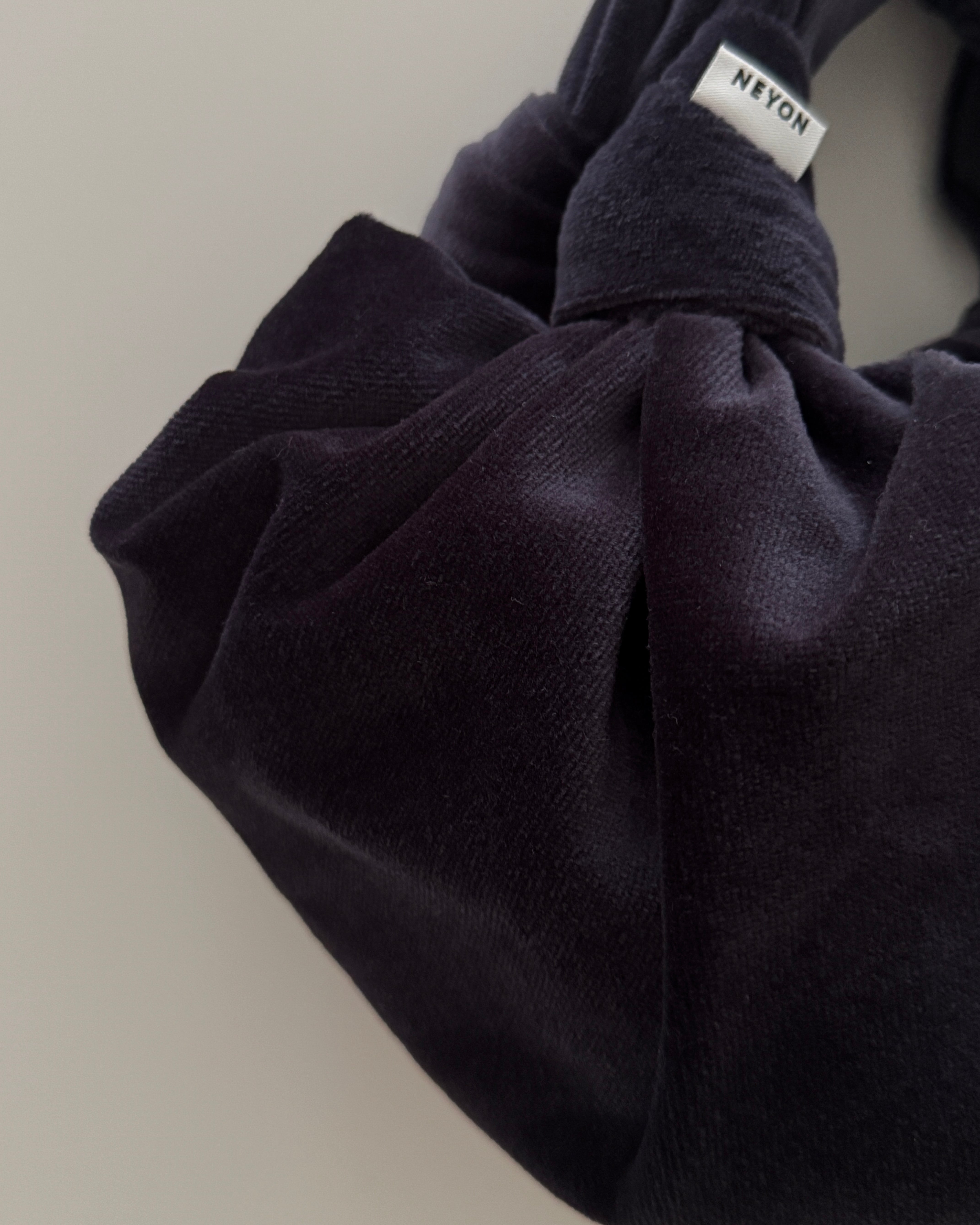 ポジャギバッグのような結び目がアクセントの別珍素材の裏地付きバッグです。
