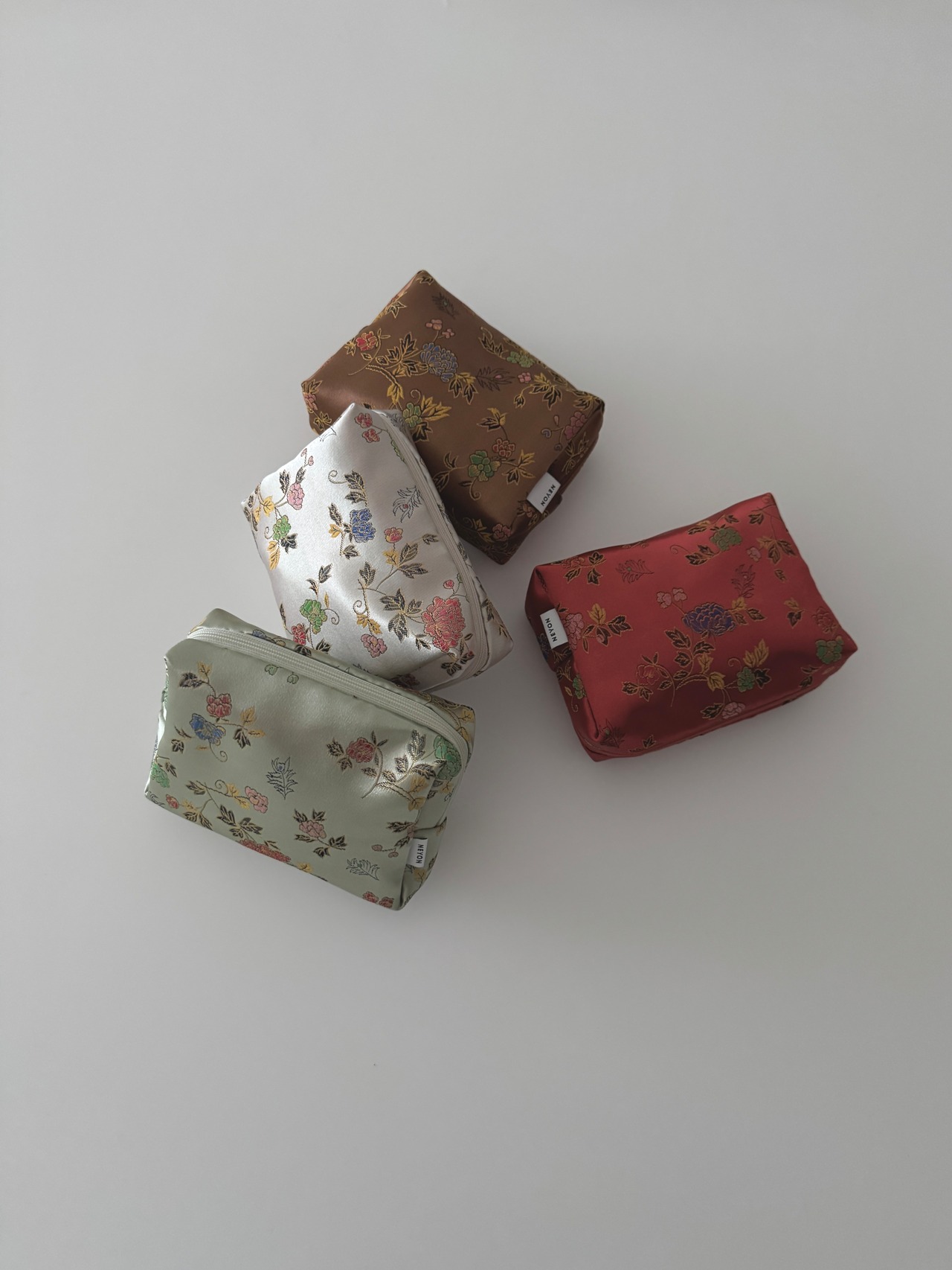 韓国伝統文様のバラの織り柄が入ったヤンダン生地の立体ポーチです。