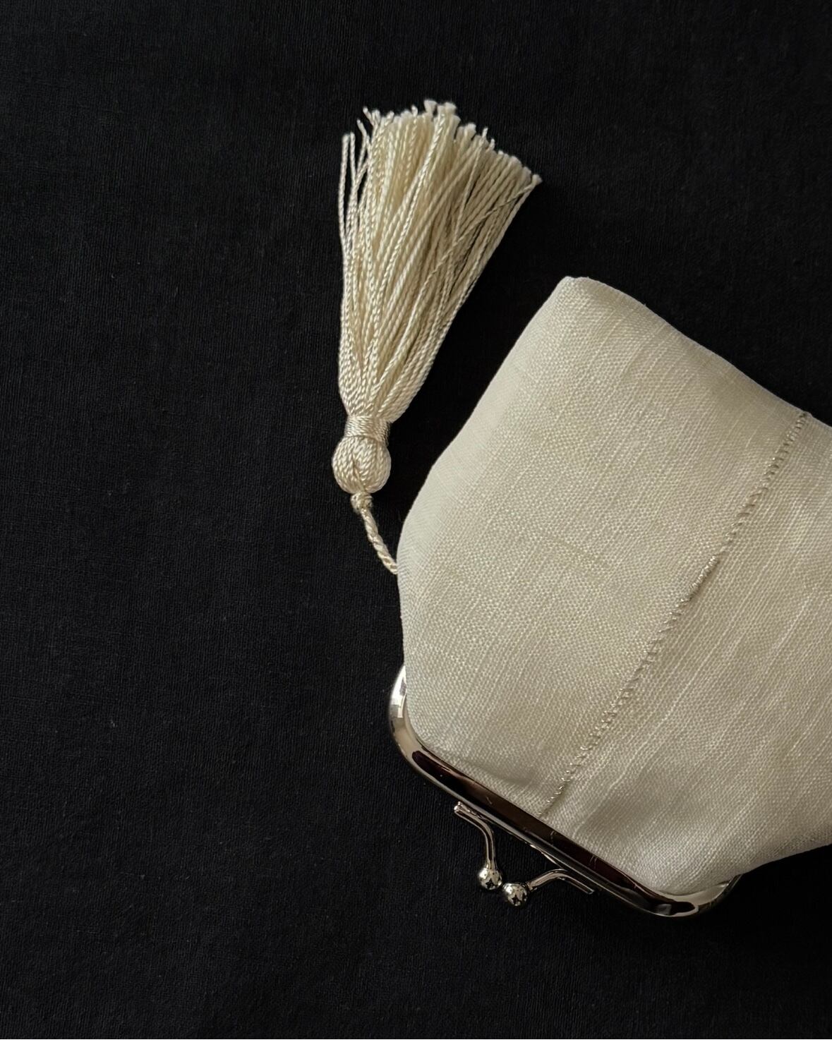 ポーチの中央部分には、チョガッポで用いられる``巻き縫い’’の技法を取り入れております。