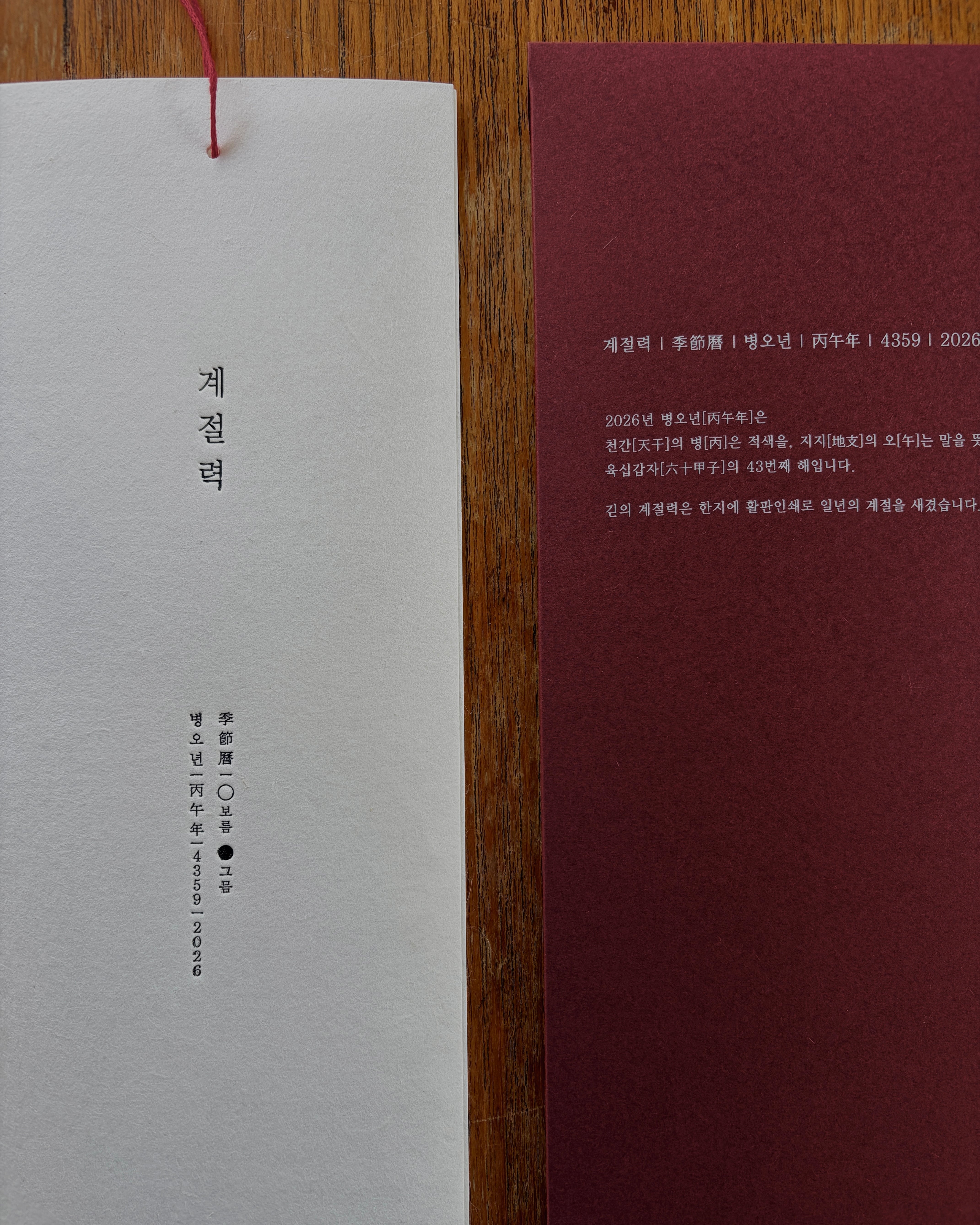 今年も、韓国の印刷所・긷(ギッ)より2026年の季節暦が届きました。