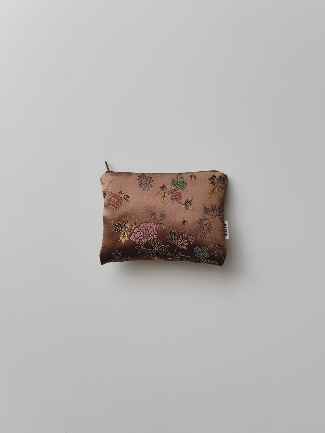 韓国伝統文様のバラの織り柄が入ったヤンダン生地のフラットミニポーチ。