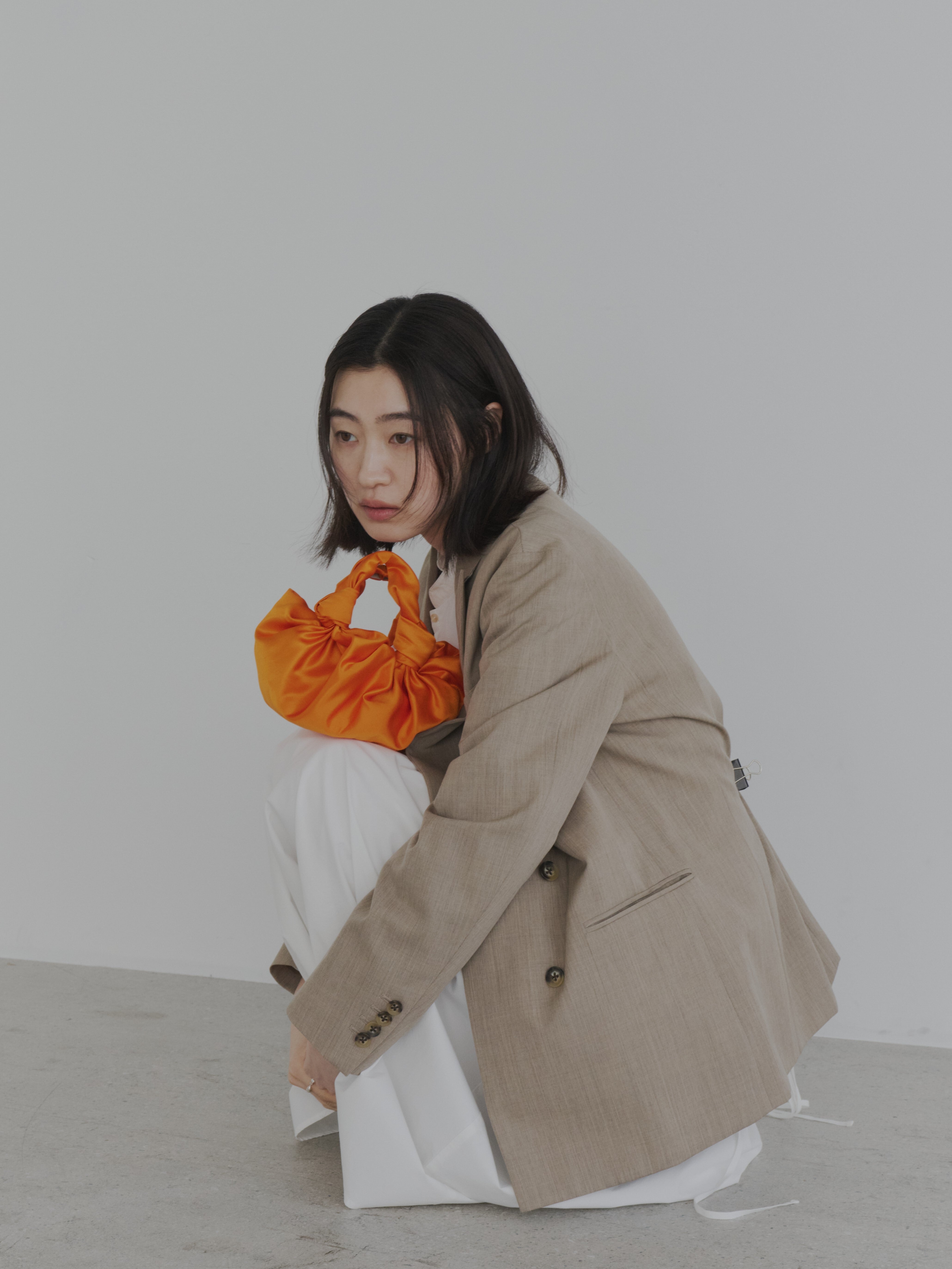 ポジャギアートの一つであるポジャギバッグから着想を得た、結び目がアクセントのコットンシルクサテン素材の裏地付きバッグです。